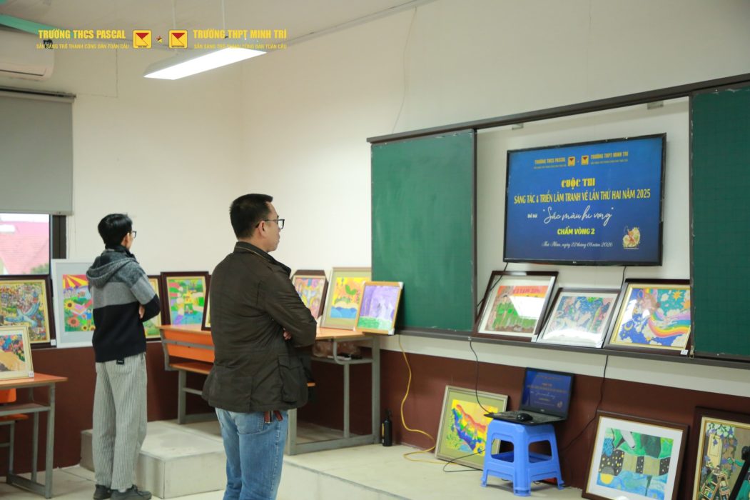 Trong khuôn khổ chương trình “Sáng tác và triển lãm tranh vẽ”, trong ngày 22/01/2026, Trường THCS Pascal – THPT Minh Trí tổ chức chấm tranh vòng 2 để lựa chọn các tác phẩm vào vòng đấu giá.