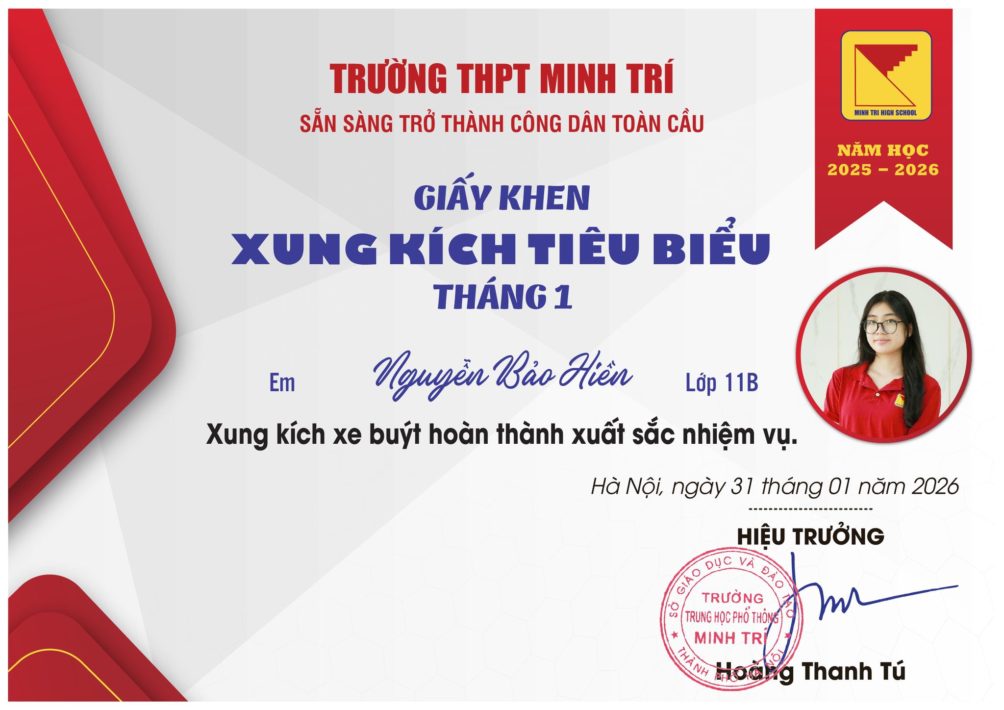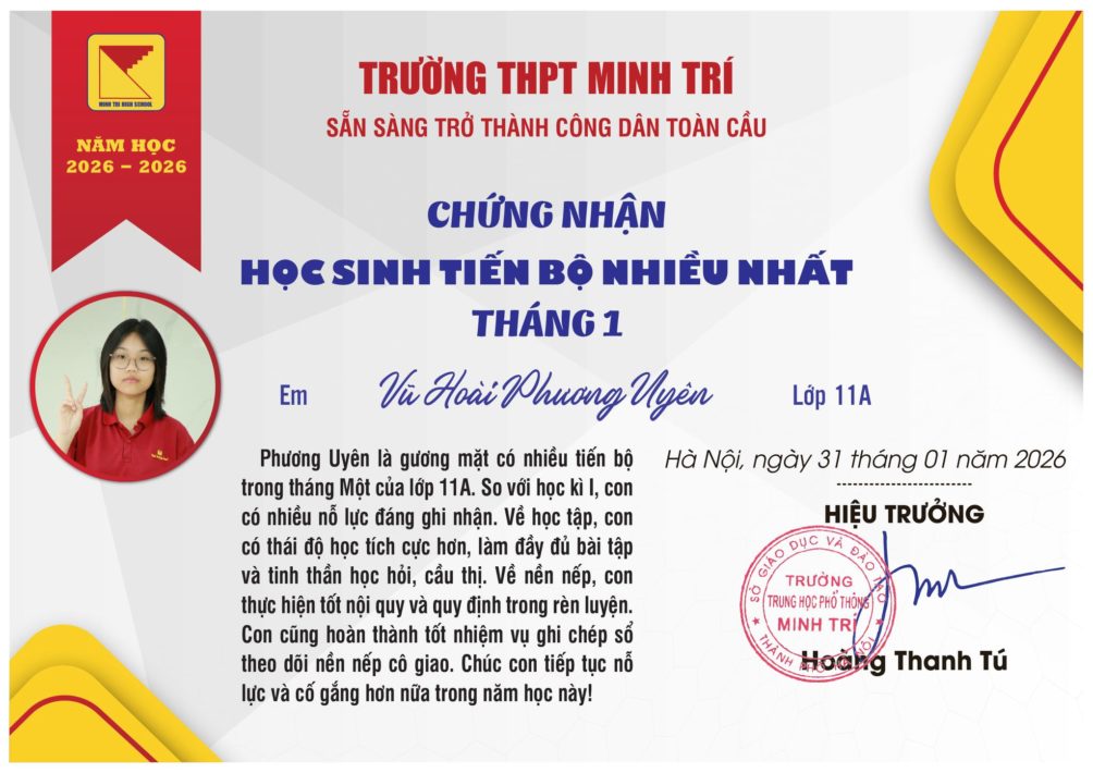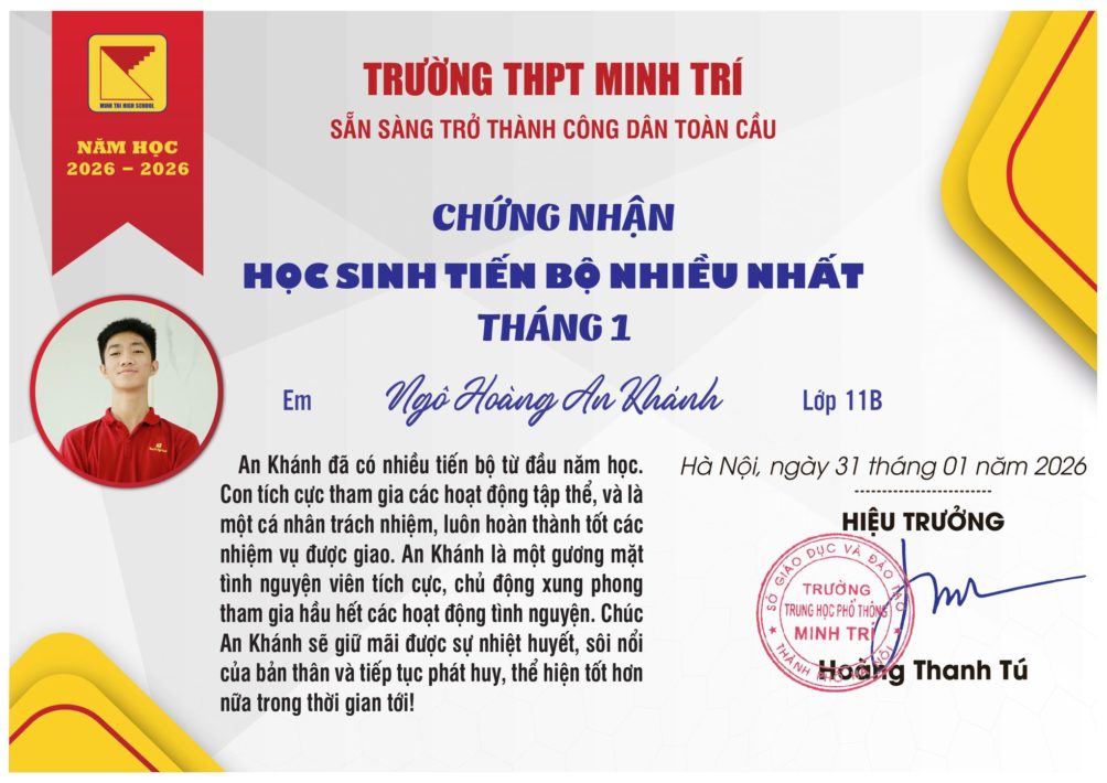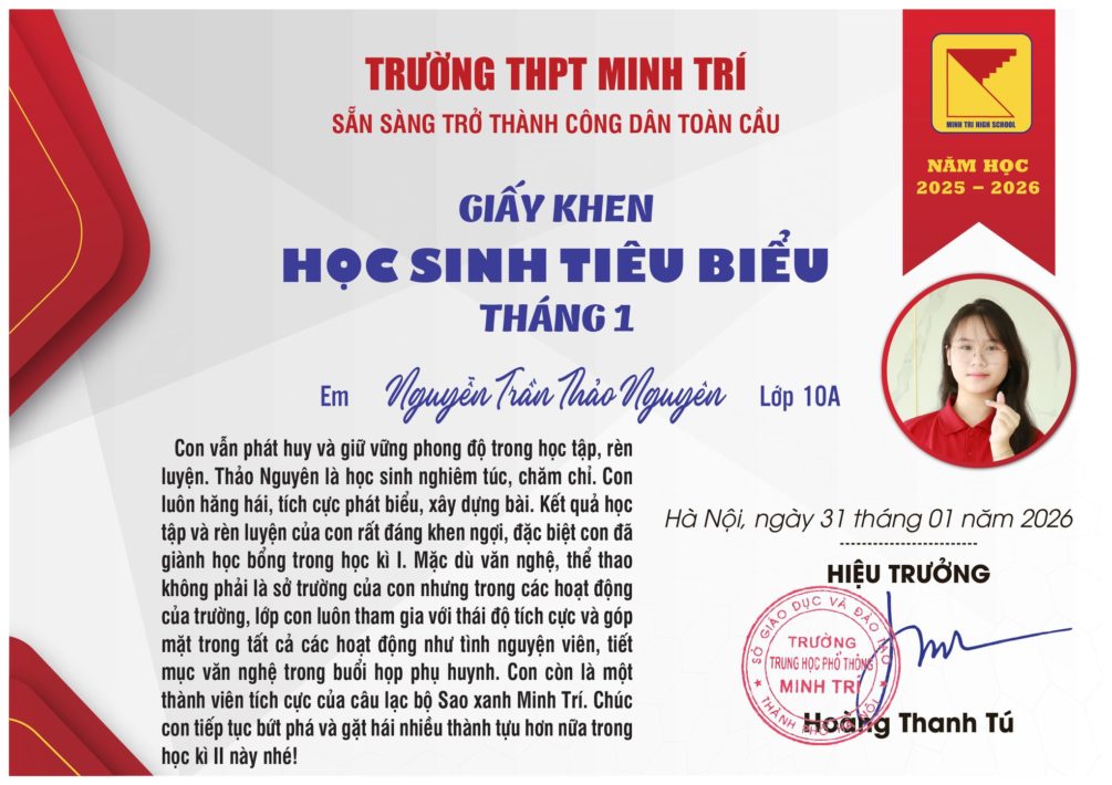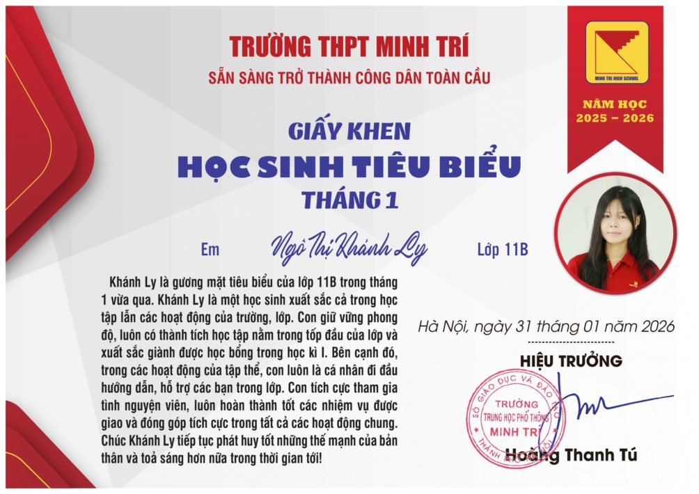 THPT MINH TRÍ – HỌC SINH TIÊU BIỂU/TIẾN BỘ THÁNG 01. NĂM HỌC 2025 – 2026